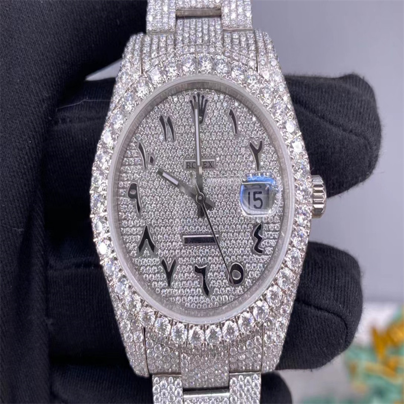 | Hervorheben: | Uhr 3EX Moissanite,Konfliktfreie Moissanite-Uhr,Voll gefror heraus vvs Diamantuhr |